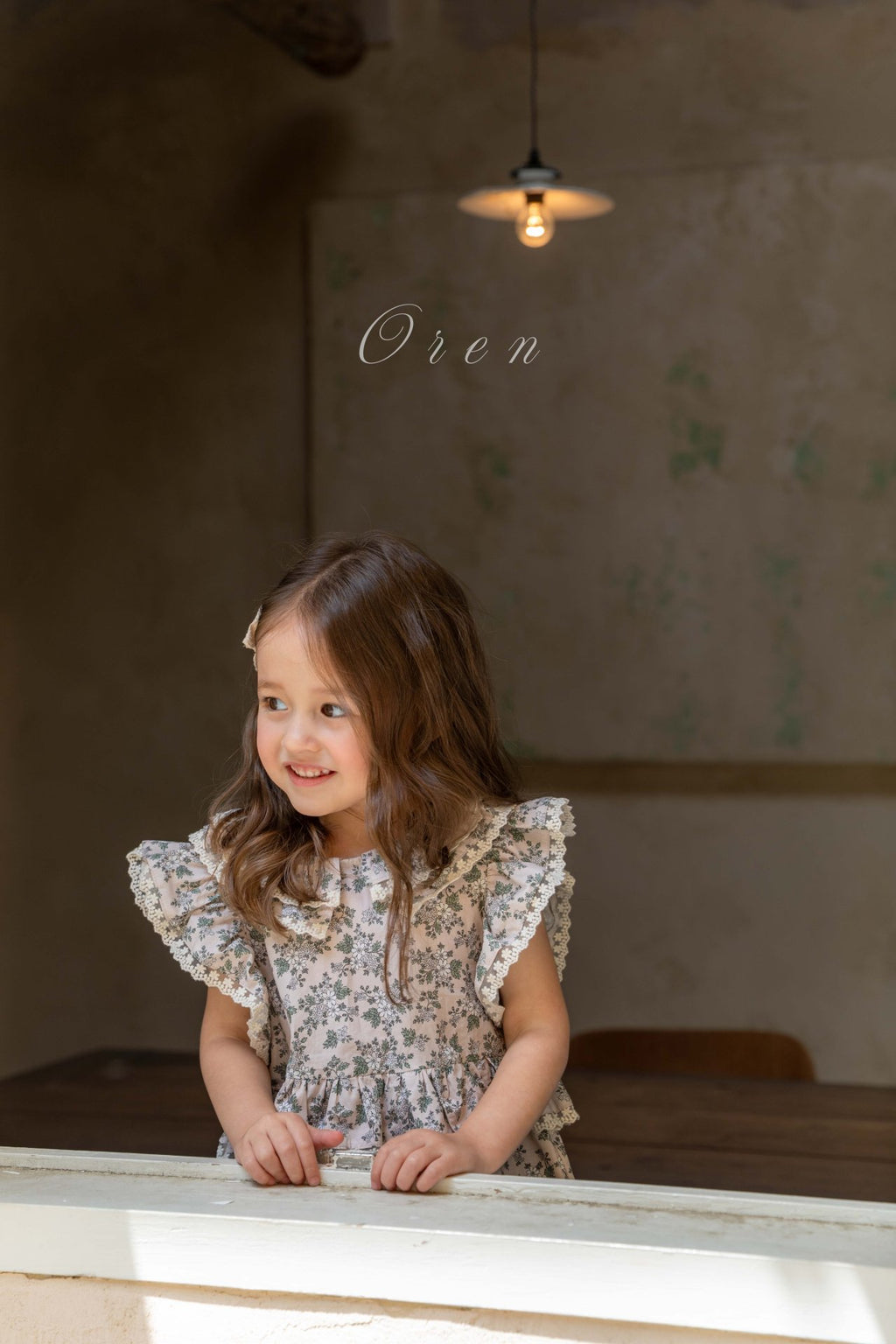 The voluminous ruffles extending from the shoulders and the side ruffles at the waist create a cute and lively style.